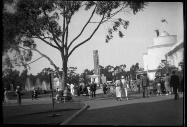 Description: View towards Pan American Plaza ,with the the Palace of Electricity and Varied Industries building on the right