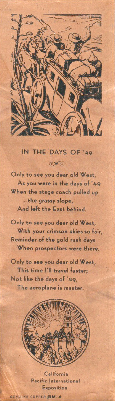 Description: Bookmark "In the Days of '49"